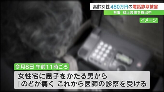 息子をかたる男からの電話を信じた高齢の女性が、480万円をだまし取られる詐欺被害がありました。