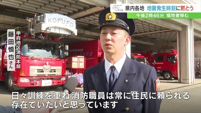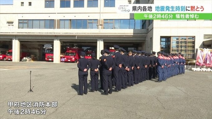山梨県内の各地で、地震の発生時刻に合わせ黙とうがささげられました。