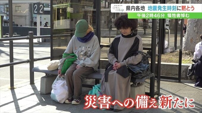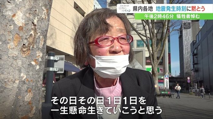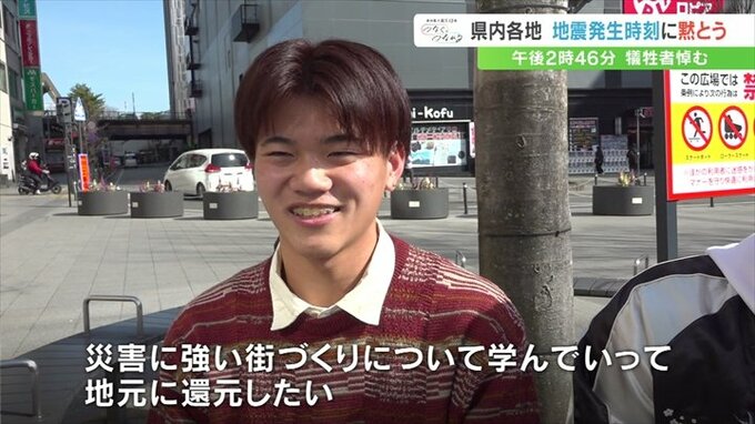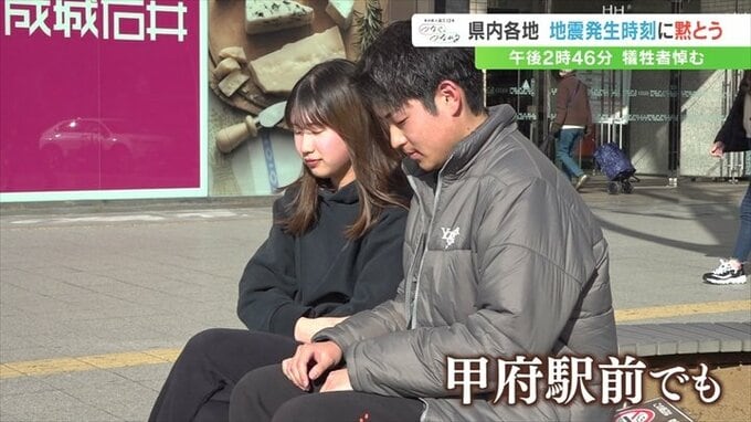 同じ時間帯に甲府駅前でも、防災無線に応じて黙とうをする人の姿がありました。