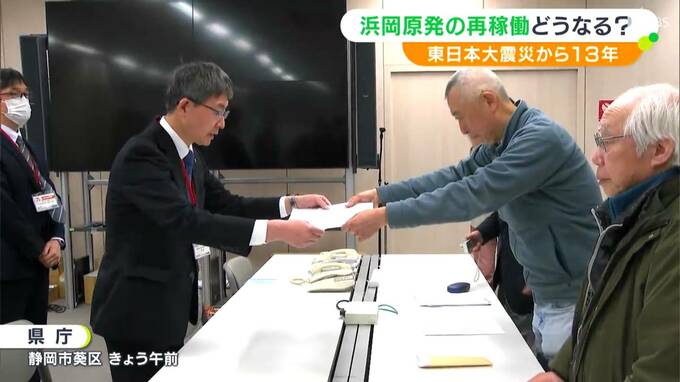 3月11日、市民団体が静岡県に手渡したのは、中部電力浜岡原子力発電所に関する要請書です。南海トラフ巨大地震で原発事故が起きた場合の避難計画などを問うとともに、浜岡原発の再稼働反対をあらためて訴えました。