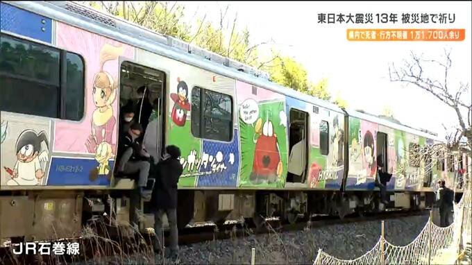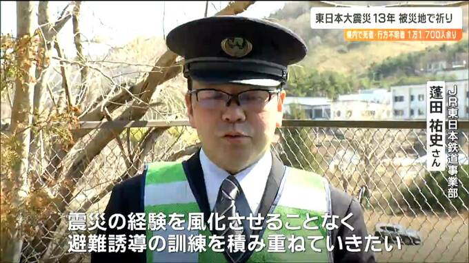 JR石巻線では避難訓練が行われました。女川町の浦宿駅から女川駅の間で行われた訓練には、JR東日本の社員や町の職員らおよそ100人が参加。震度6強の地震が発生し、大津波警報が出されたという想定で、乗客は緊急停止した列車から降り、線路の上を歩いて高台にある指定避難場所に向かいました。この地区の予想津波到達時間は37分で、避難にかかった時間はおよそ10分でした。