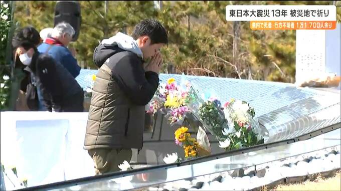 震災で犠牲になったおよそ3700人の名前が刻まれた石巻市の慰霊碑にも、多くの人が足を運び亡くなった家族を悼みました。