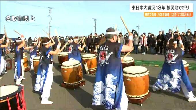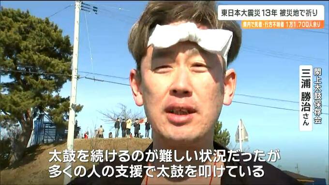 名取市閖上では「閖上太鼓保存会」のメンバーが、鎮魂や復興の願いを込めて和太鼓を追悼演奏しました。