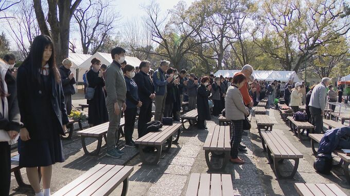 名古屋市昭和区の鶴舞公園では、ボランティア団体などが主催する追悼式が行われ、地震が発生した午後2時46分に黙祷が捧げられました。
