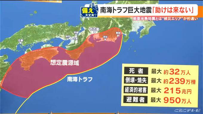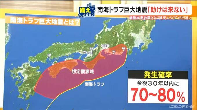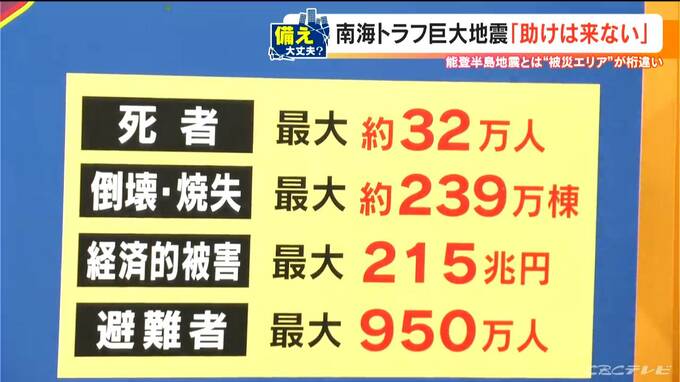 圧倒的に地震の大きさが違うんです。今回の能登半島地震と比べると、地震を起こす震源域の大きさが25倍ぐらいあるんです。結果として、超広域災害になってしまいます。