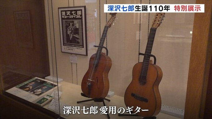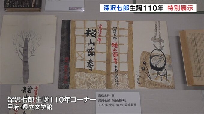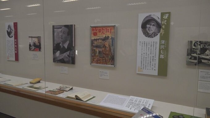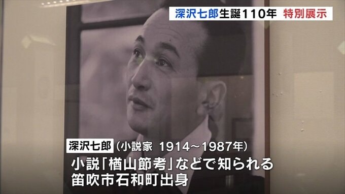 山梨県笛吹市出身の小説家 深沢七郎の生誕110年を記念した特別展示が甲府市の県立文学館で開かれています。