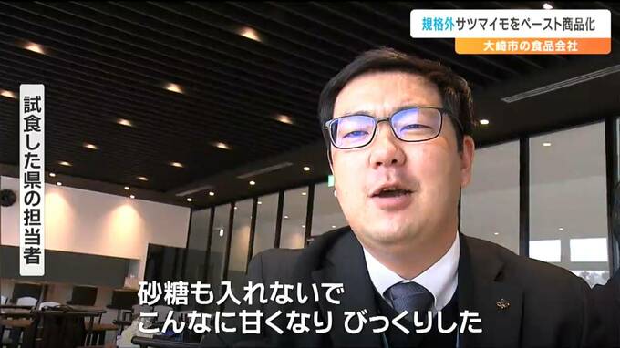 そこで、この食品会社は県が進めるフードロス対策のプロジェクト事業に参加。規格外となったサツマイモを活用した商品開発に取り組んできました。そして、新たに生まれたのがサツマイモペーストです。佐藤専務や県の担当者らが工場で加工した試作品の出来栄えを確認しました。