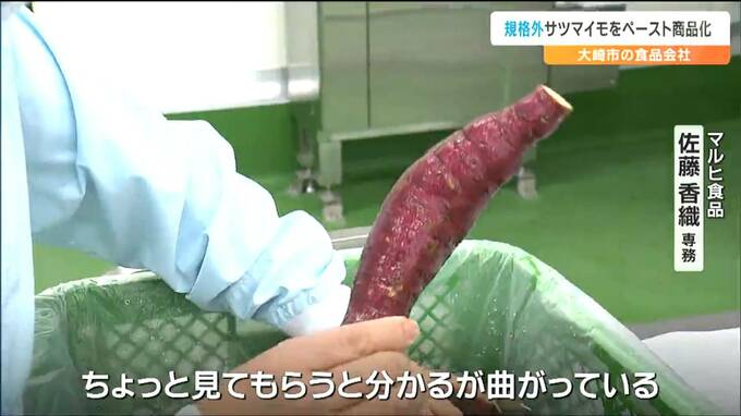 形や大きさの不揃いなどで出荷できず廃棄されてしまう食材の有効利用を図る取り組みです。宮城県大崎市の食品会社が、県内で生産された規格外のサツマイモをペーストにして商品化し、4月から試験販売することになりました。