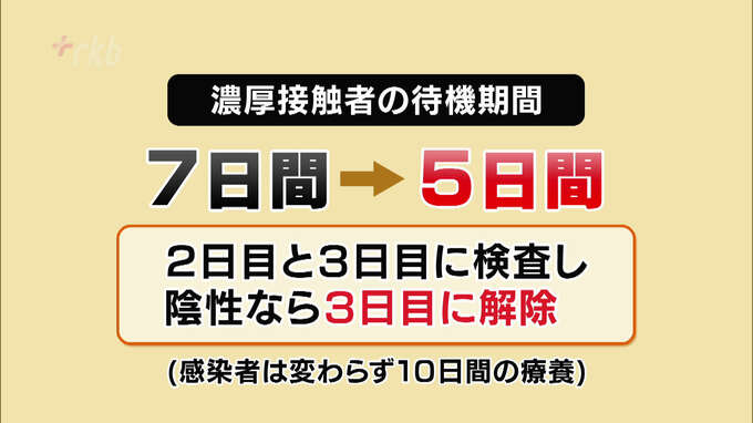 濃厚接触者の待機期間は7日間から5日間へと短縮され、2回の検査で陰性となれば最短3日で解除されることになりました。