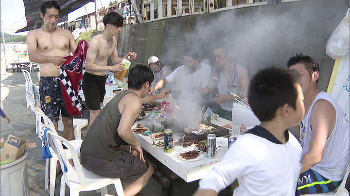 夏休み最初の週末となった23日。海水浴場では、バーベキューなど楽しむ親子連れの姿が多く見られました。