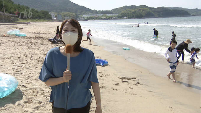 RKB小松久里子「福岡市西区の海水浴場です。夏休みということもあり、子供たちがとても楽しそうに遊んでいます」