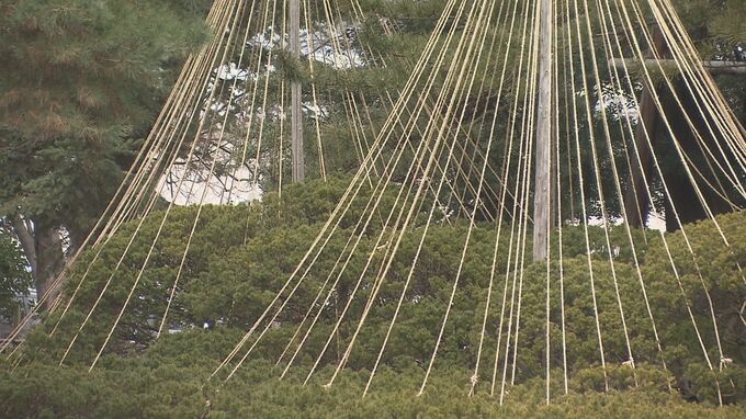 福島県会津若松市の御薬園では12日、冬の間、雪の重さで木の枝が折れることを防ぐ雪吊りの撤去作業が行われました。会津藩の庭園として整備され、600年あまりの歴史を持つ御薬園では、アカマツやゴヨウマツなど33…