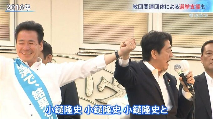 世界平和統一家庭連合に対し、政治家との関係について番組が聞くと、「特定の政党や候補者を組織的に支援することはない」とした上で、北村議員に関する文書は「承知していない」と回答。井上氏と小鑓議員については、教団の関連団体が支援したことを認めた。