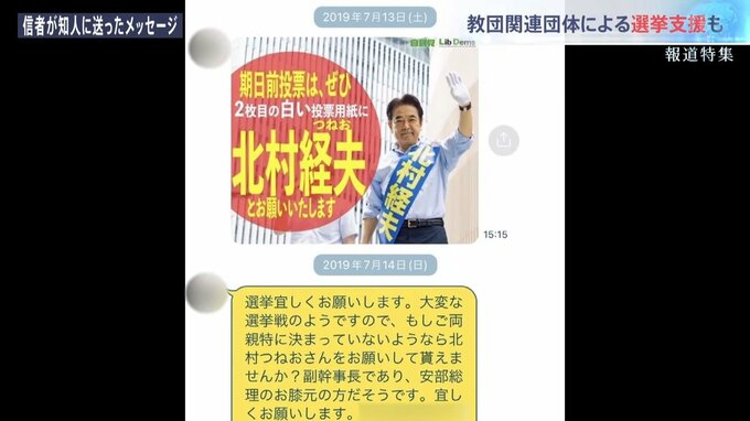 さらに番組では、次の2019年の選挙で、信者が知人らに投票を呼びかけたメッセージを入手。そこには…