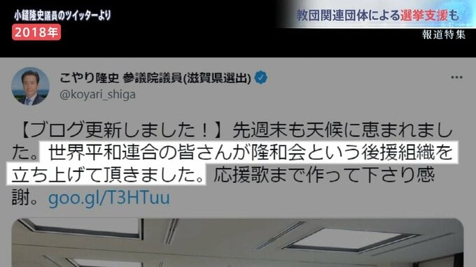 番組が小鑓議員に対し、旧統一教会の関連団体から後援を受けている経緯や、関係性について取材したところ…