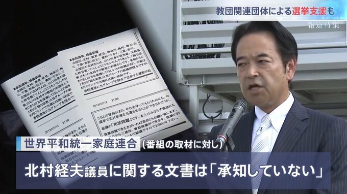 番組が北村議員に、旧統一教会の信者が選挙支援を行ってきた事実があるか取材したところ、「そうした事実はありません」と回答した。