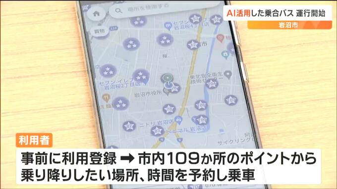 効率的で利便性の高いバス交通の提供を目指します。宮城県岩沼市でAI、人工知能を活用した乗合バスの運行が12日から始まりました。