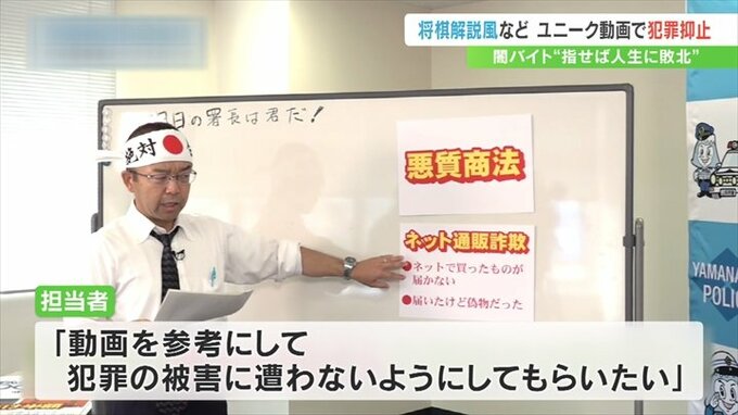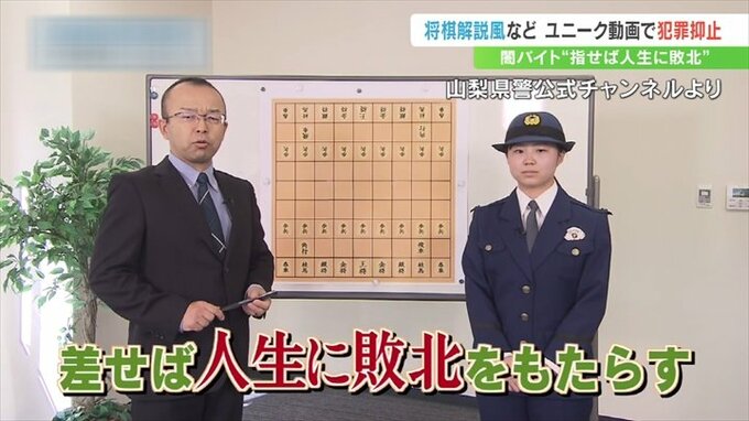甲府警察署が制作した将棋の解説や長寿のトーク番組風の演出で犯罪の手口などを分かりやすく紹介する動画が話題となっています。