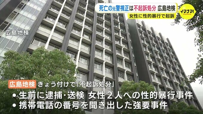 女性に性的暴行を加えたとして逮捕・起訴され、勾留中に死亡した元警視正の男について、広島地検は12日、送検された事件を「不起訴処分」とし、捜査を終えたことを明らかにしました。不起訴処分となったのは、中国…