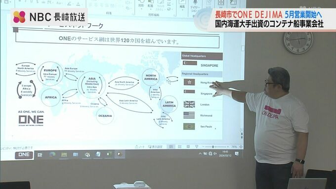ONEは、来月、長崎市に新会社「ONE DEJIMA」を構え、世界のコンテナ船需要状況を知るための市場調査や情報収集のほか、人事関連業務のサポートなどを行います。