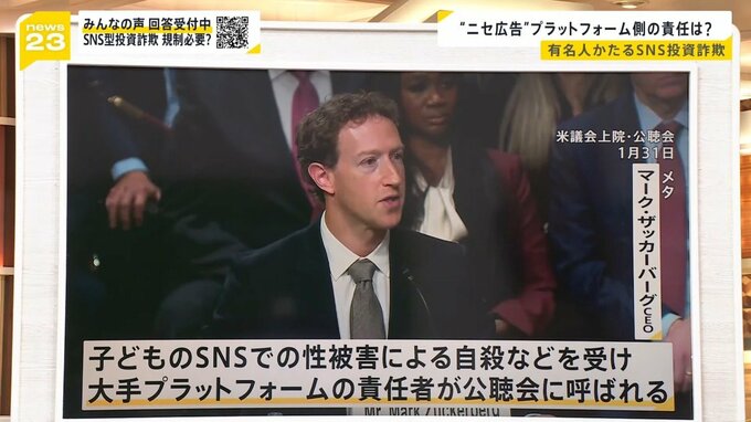 アメリカでは、SNSの利用で子どもが性被害を受けた画像が拡散され、自殺に追い込まれるというケースが相次ぎました。これを受け、今年の1月にFacebookを運営するMetaのザッカーバーグCEOらが議会の公聴会に呼ばれ、謝罪をするという形になりました。