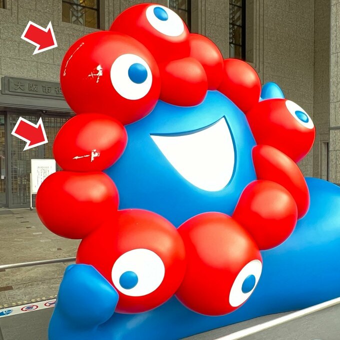 【画像で見る】ビッグモニュメント「ミャクミャク」の傷