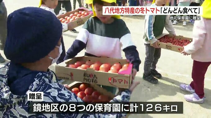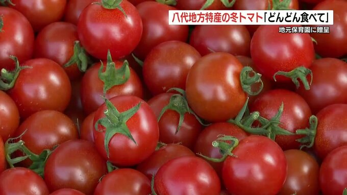 熊本県八代地方特産の冬のトマトが地元の保育園に贈られました。