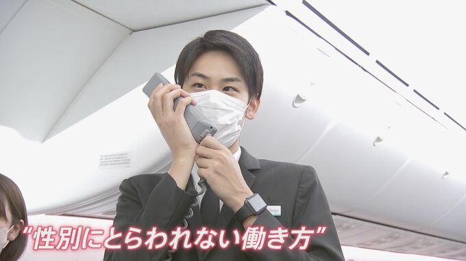 「いままで女性だけの仕事と思っていたんですけど、男性がいて自分もなってみたいと思い客室乗務員になりました」