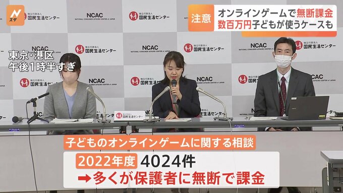 オンラインゲームをめぐって「子どもが無断で課金した」などといった相談が1年間で4000件あまり国民生活センターに寄せられたことがわかりました。中には無断で数百万円を課金していたケースも。国民生活センタ―…