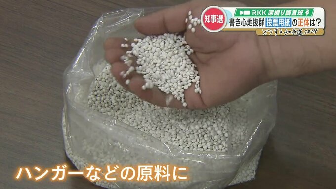 熊本市などから投票用紙のリサイクルを請け負うこちらの企業では、投票用紙をハンガーなどの原料として加工しています。