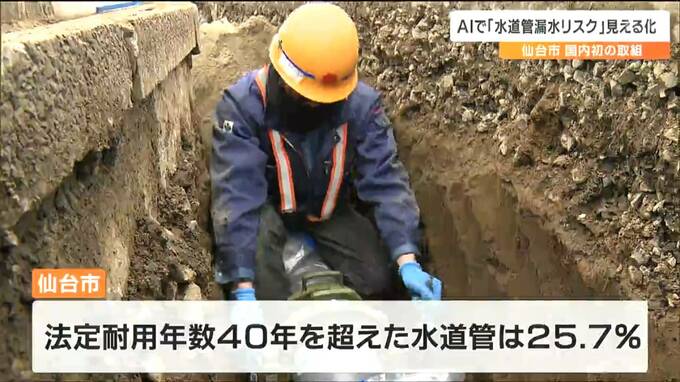 仙台市で、法定耐用年数の40年を超えた水道管は25.7%に上っています。