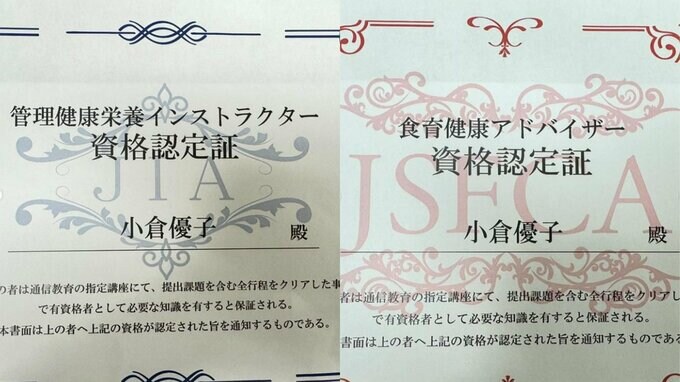 現在、育児と並行して白百合女子大学に通う小倉さんは、「大学が春休みに入り、英語学習が始まる前に気になっていた資格を取りました」と”食育健康アドバイザー”と”管理健康栄養インストラクター”の資格を取得したことを明かしました。