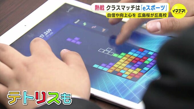 パズルゲームの「テトリス」をする表情も真剣です。桜が丘高校は、自信や向上する力などを育てようと、「総合的な探求」の時間にこの1年間、「eスポーツ」を取り入れてきました。