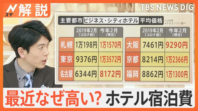 いま、みなさんが「高い!」と感じている『ホテルの価格』。ビジネスホテルでも、1泊1万円を超えるところが続出しています。南波雅俊キャスター:私も今日まさに出張するために、ホテルを探してたんですけど、やっ…
