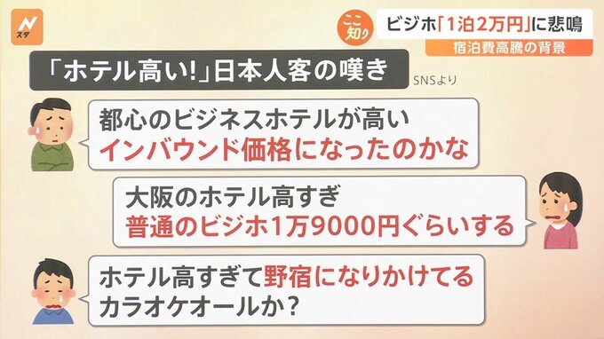 「大阪のホテル高すぎ。普通のビジホ1万9000円ぐらいする」