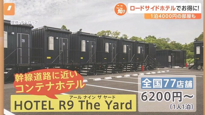 それから、幹線道路に近いところにあるコンテナホテル「HOTEL R9 The Yard」は全国に77店舗あります。
