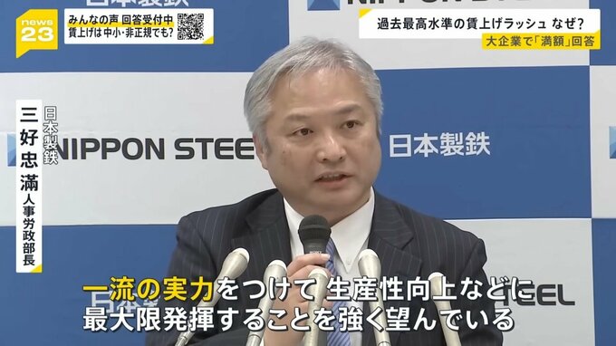 さらに日本製鉄は、組合が要求したベースアップ相当分を上回る月額3万5000円で回答。こちらも過去最高額です。
