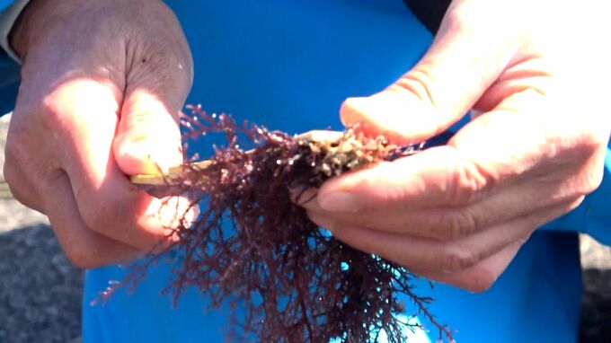 ところてんの原料などとして知られるテングサが、どれだけ成長しているかを確認するための調査が3月14日、静岡県下田市で行われました。