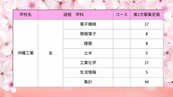 【2次募集校の定員数一覧あり】沖縄県立高校入試 15日から41校90学科を対象に第2次募集開始 琉球放送 2024年3月14日(木) 13:32 国内 沖縄工業・南部工業・宮古工業・八重山商工・具志川商業・中部商業