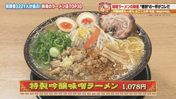 第4位は新潟市内に3店舗を構える「吟醸味噌らーめん まごころ亭」。