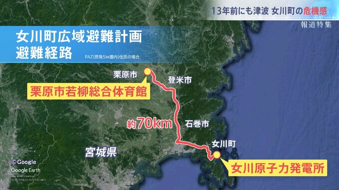 その後、策定された原発事故を想定した避難計画では、女川原発の周辺住民は約70キロ離れた栗原市に避難することになっている。
