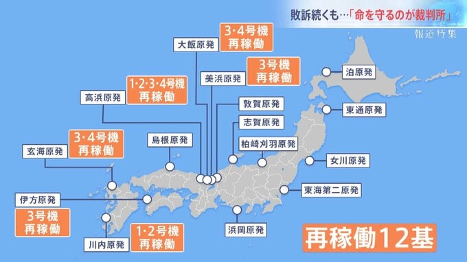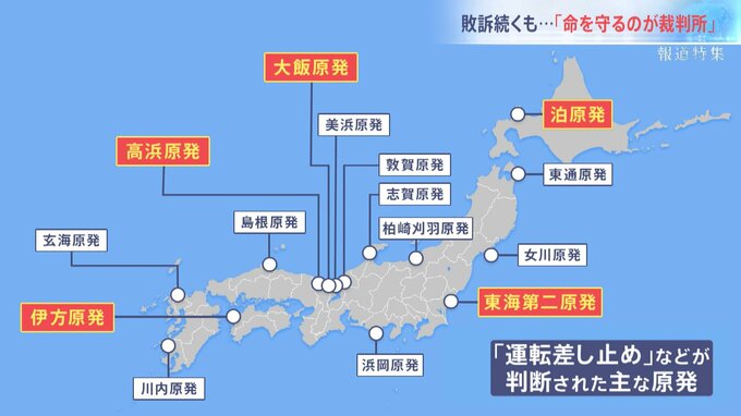 これまで5か所の原発について「運転差し止め」などを命じた司法判断が下されたが、審理中を除き、いずれも上級審などで覆った。