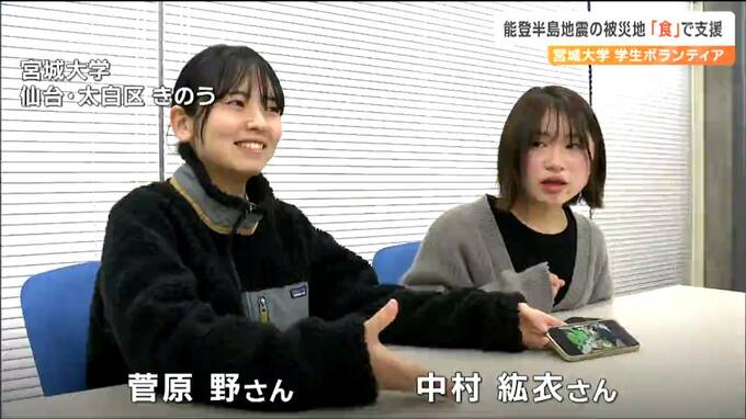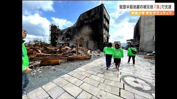 食品製造や食の安全などを学ぶ宮城大学の学生たちが、能登半島地震の被災地でボランティア活動に取り組んできました。避難所で被災した人たちに食事を提供した学生は「食」を通した支援の大切さを訴えました。