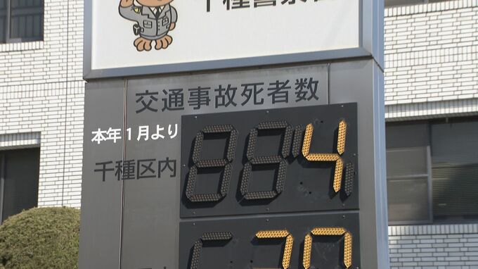 名古屋の千種警察署に掲げられたボードには、ことしの千種区内の交通事故死者数「4人」の表示が。