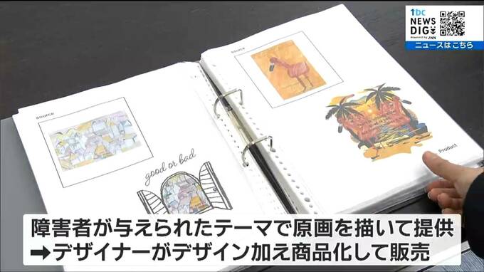 この事業所では障害がある人が、与えられたテーマをもとにアーティストとして原画を描いて提供。
