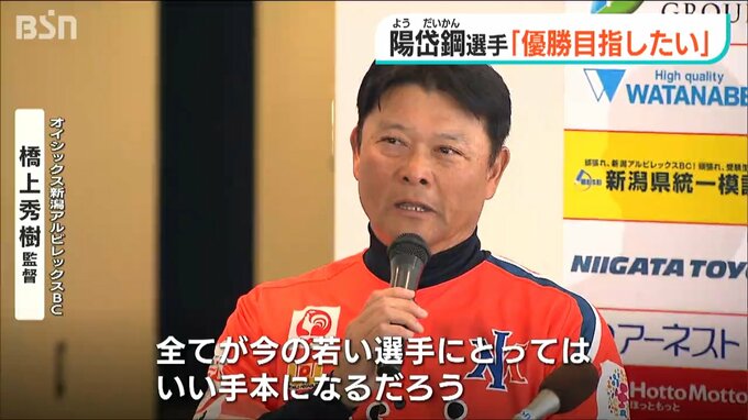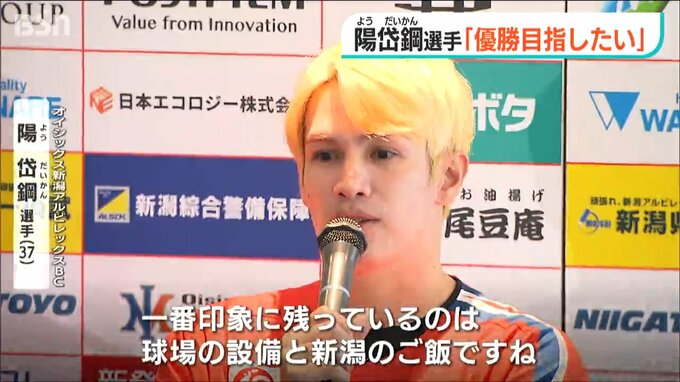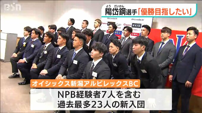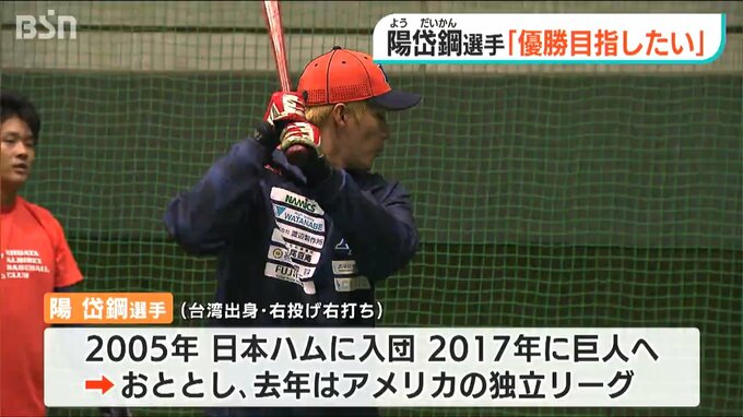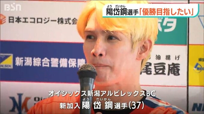プロ野球のイースタン・リーグの開幕を目前に控えた14日、シーズンに初めて挑む『オイシックス新潟アルビレックスBC』にNPB経験者として新加入する陽岱鋼 選手が入団会見を行い、「チームとして優勝をめざしたい」と力強く語りました。