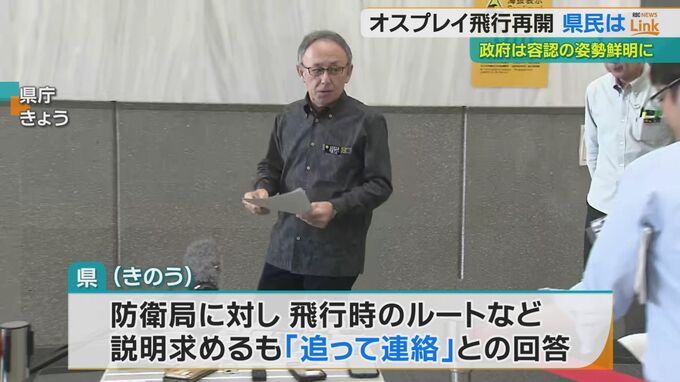 県は13日に防衛局に対し飛行時のルートなどについて説明を求めましたが、「追って連絡する」との回答後、14日までに具体的な説明はありませんでした。