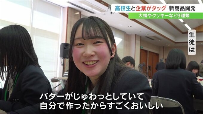 会場では開発に関わった約30人の生徒が味や食感だけでなく、パッケージの細部にまでこだわったことを発表し、試食会も行われました。