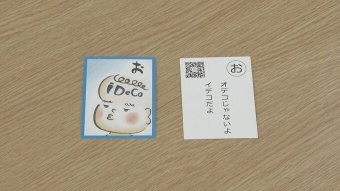 よく見ると「オデコじゃないよ、イデコだよ」「NISAで兄さん投資始める」などダジャレなどで構成された親しみやすい『かるた』です。