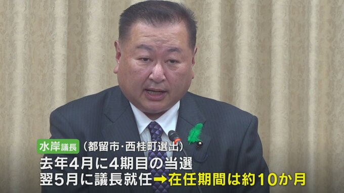 水岸議長は去年4月に4期目の当選を果たし、翌月に議長に就任、在任期間はおよそ10か月となります。
